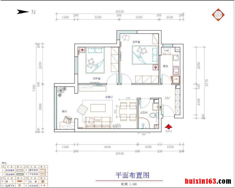 ![]() 爱国小区-91平米二居室现代简约效果图- 平面图
