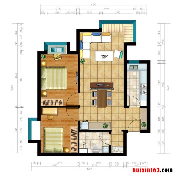 ![]() 百乐园小区-87平米二居室田园风格效果图- 平面图