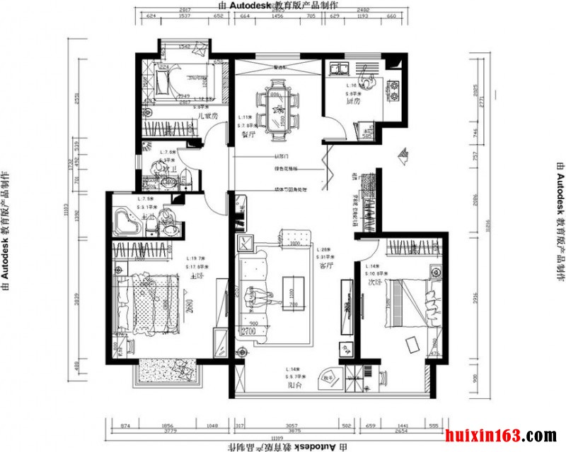 ![]() 北干道47号楼-129平米三居室田园风格效果图- 平面图